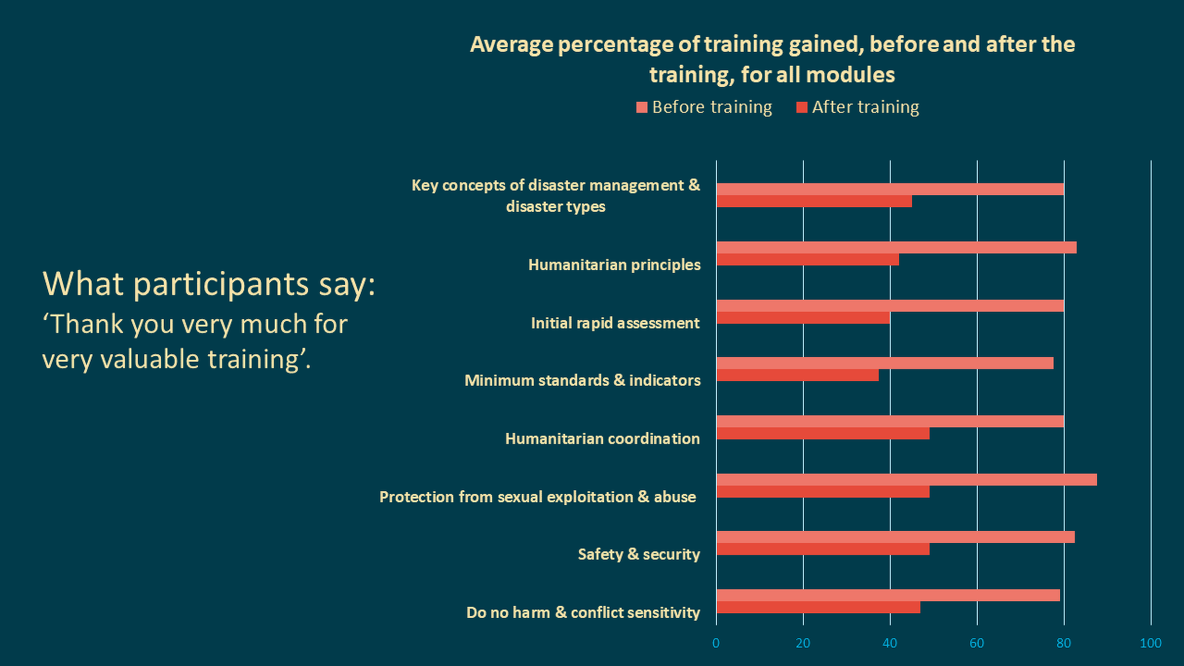 We provide ongoing training and mentoring to our partner organisations, to develop their capabilities in humanitarian and resilience programming.