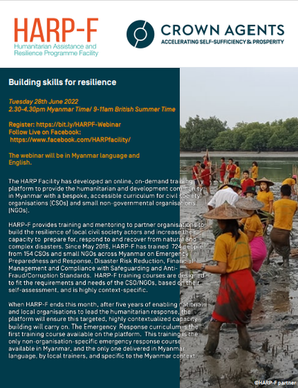 The platform is designed to provide the humanitarian and development community in Myanmar with a bespoke, accessible curriculum for civil society organisations (CSOs) and small non-governmental organisations (NGOs). The HARP-F training team presented the platform, and how international and national non governmental organisations in Myanmar could make use of this resource to develop, adapt and roll-out bespoke content for their teams.